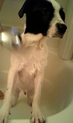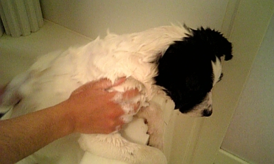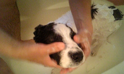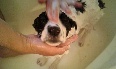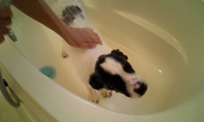 (お風呂が好きかはわからないけど、されるがまま。怖い様子もなっしんぐ)